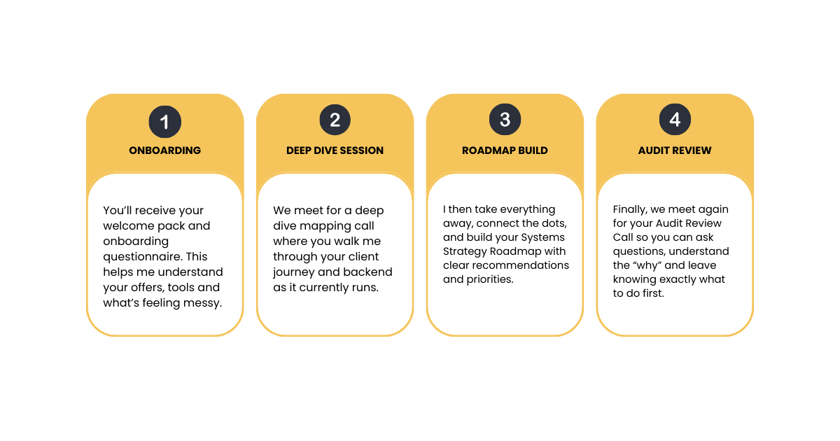 If you want a calm plan and someone to actually bring it to life, I also offer ongoing strategic systems support. This is where I implement, refine and maintain your systems as you grow.